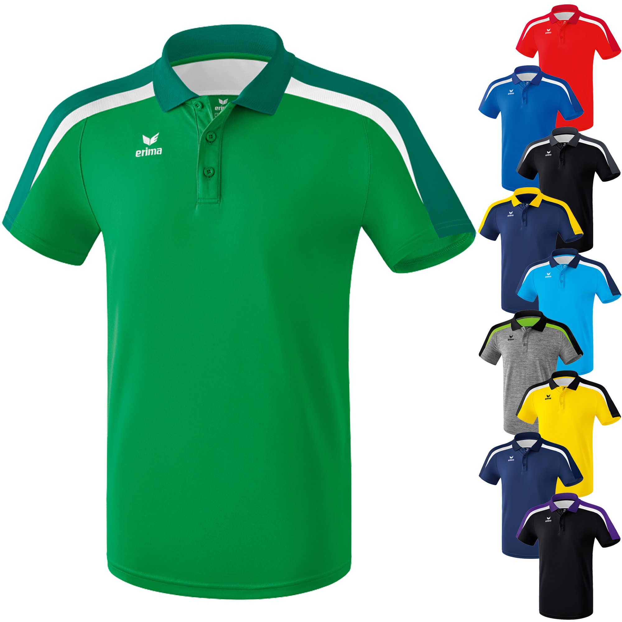 Polo Erima Liga 20 Un polo fonctionnel avec un design moderne Matière textile évacuant lhumidité à séchage rapide Empiècement en mesh pour une meilleure circulation de lair Col polo avec boutonnière à 3 boutons Composition. Polo ERIMA LIGA 20. Le col polo classique avec sa patte de boutonnage fait naturellement partie intégrante du polo ERIMA.